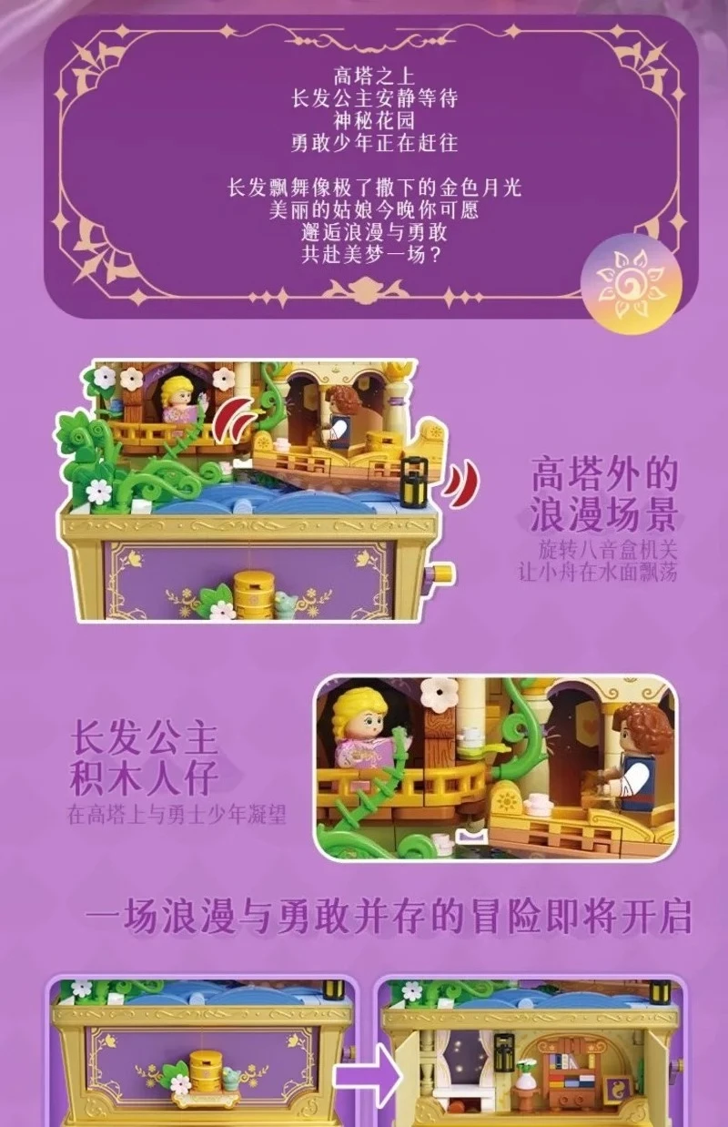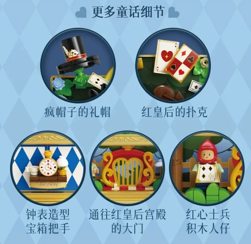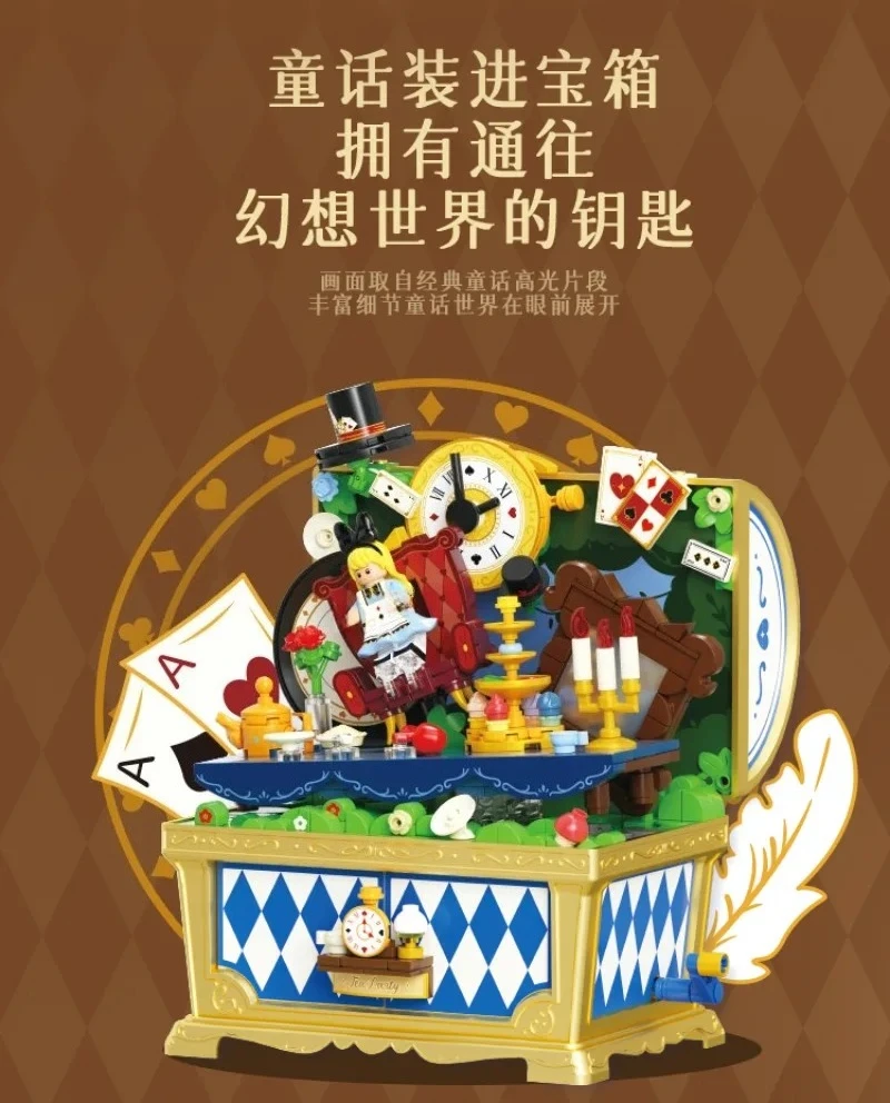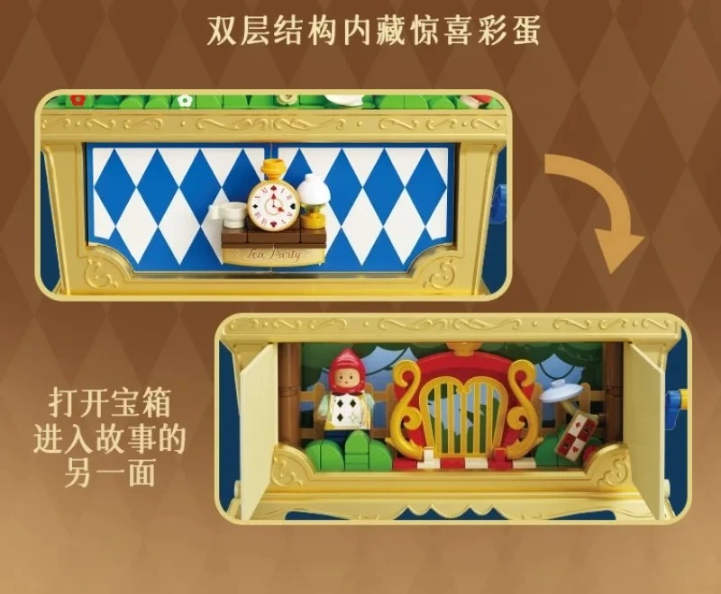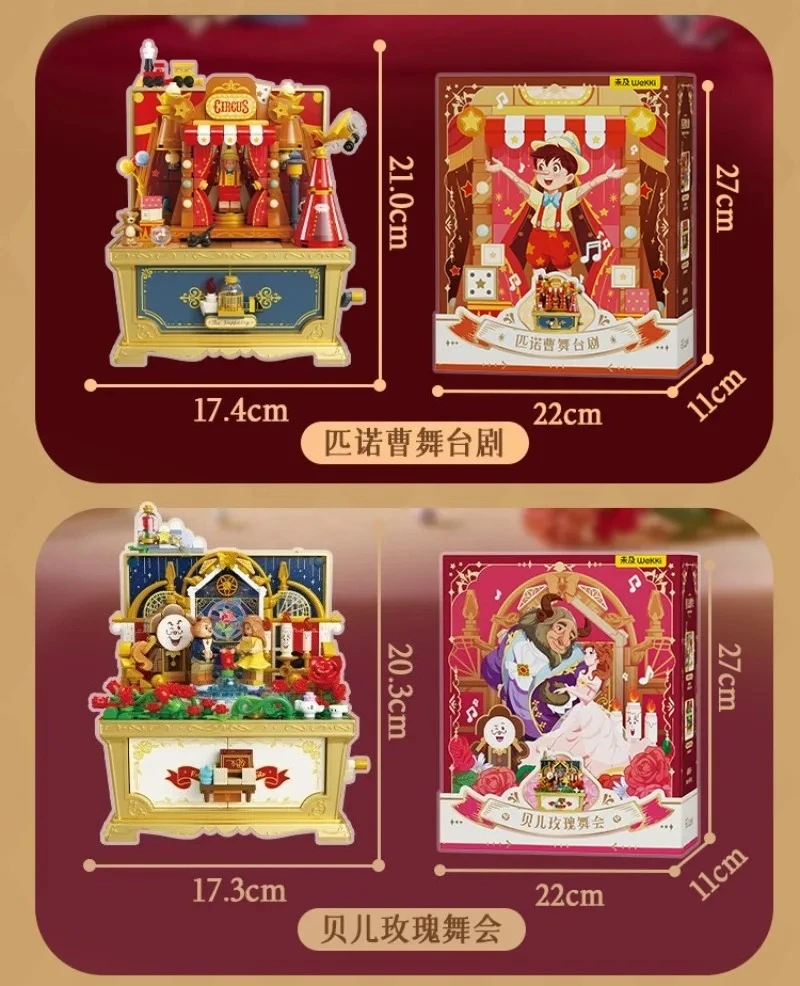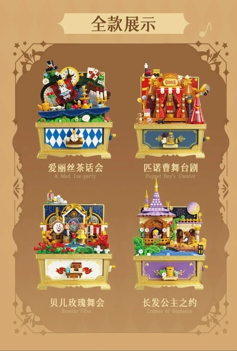 Disney Fairy Tale Building Bricks Mucis Box Alice Pinocchio Rapunzel Beauty and Beast