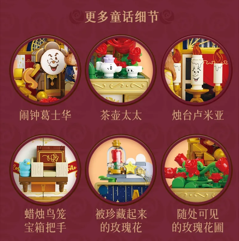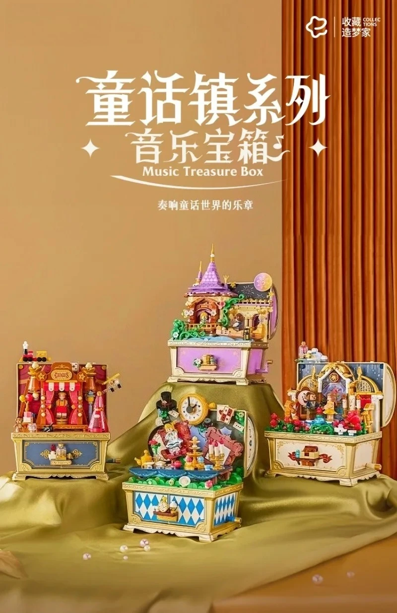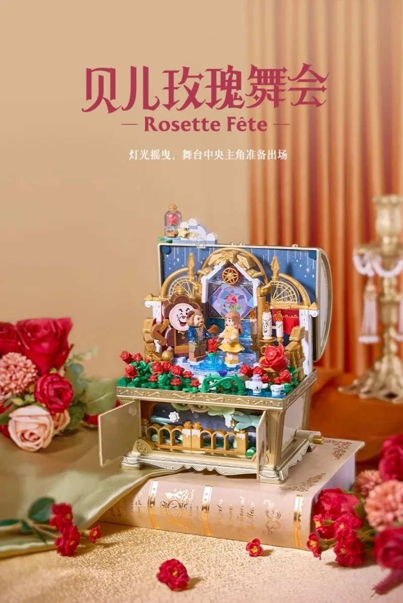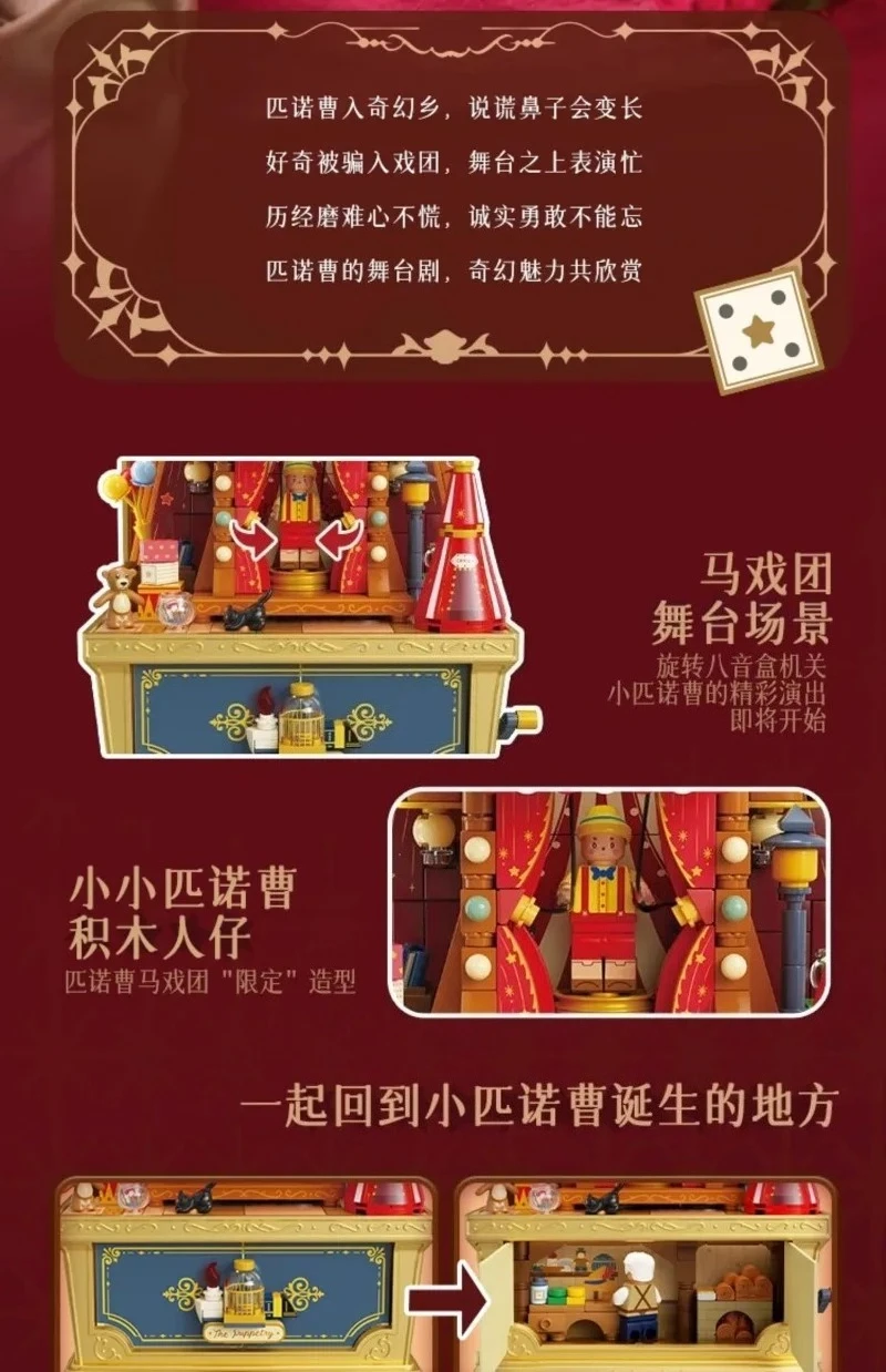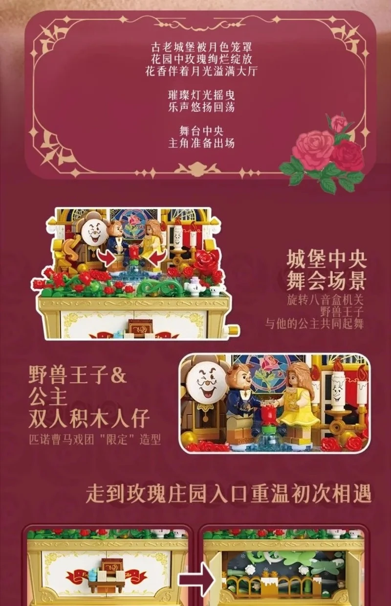 Disney Fairy Tale Building Bricks Mucis Box Alice Pinocchio Rapunzel Beauty and Beast