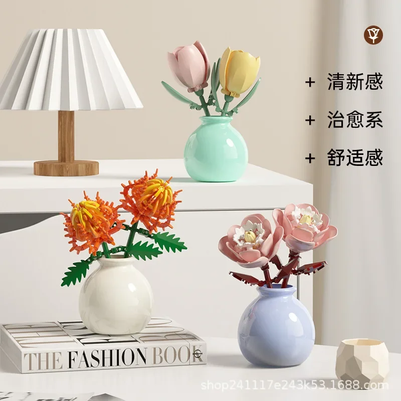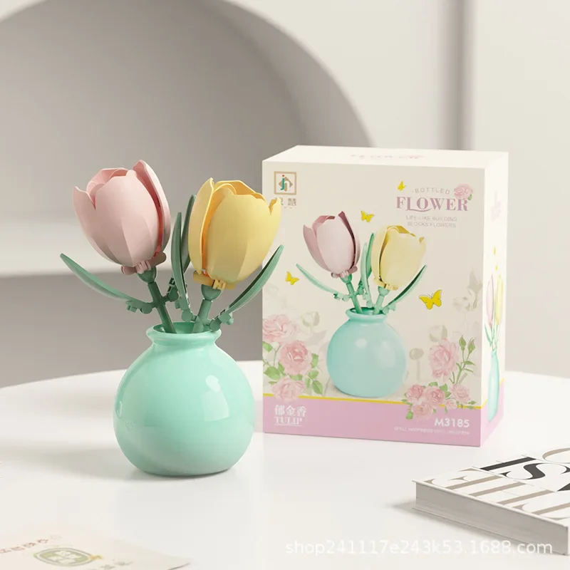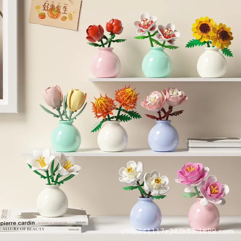 60PCS Cute Mini Bostanic Blocks in Oval Vase